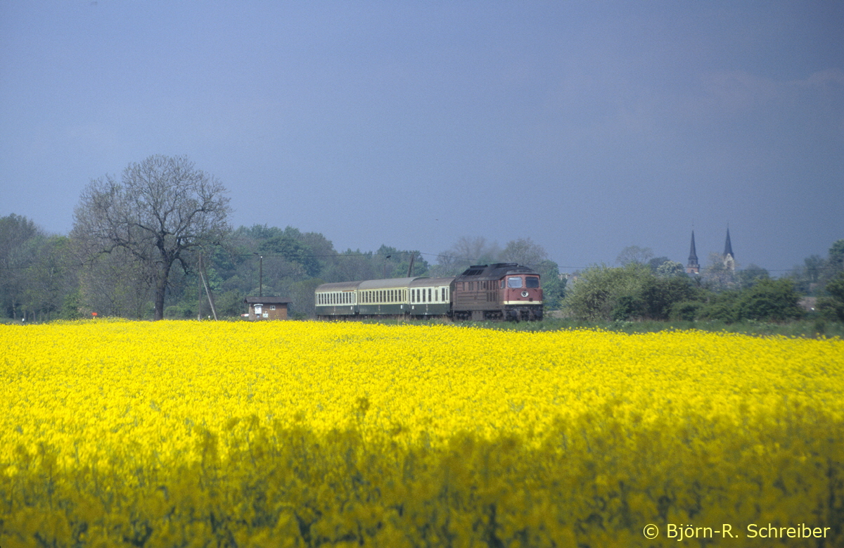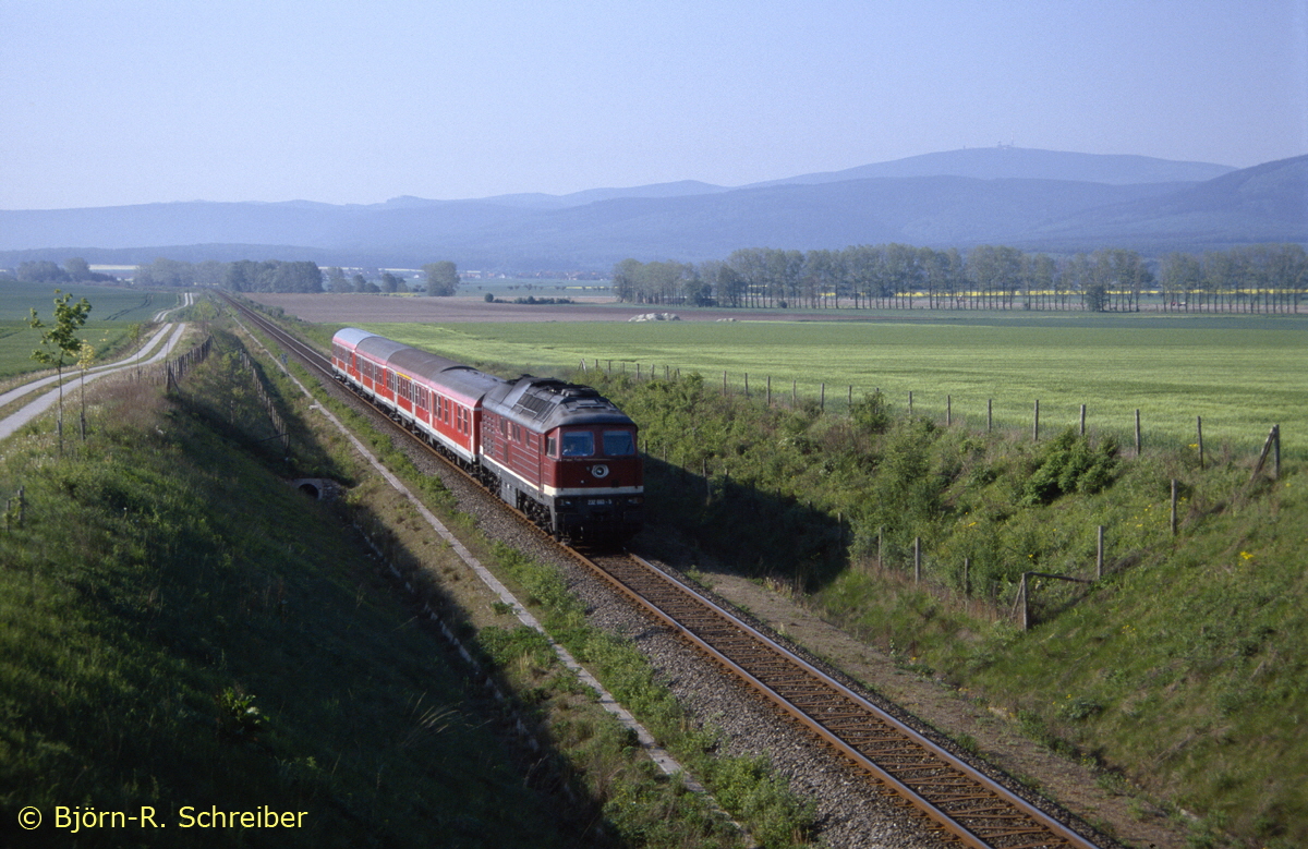 Im Jahre 1995 waren die Schnellzüge zwischen Berlin und Halberstadt noch ein Einsatzgebiet der BR 234: 234 582 am 15.05.1995 mit D 2146 bei Klein Germersleben |