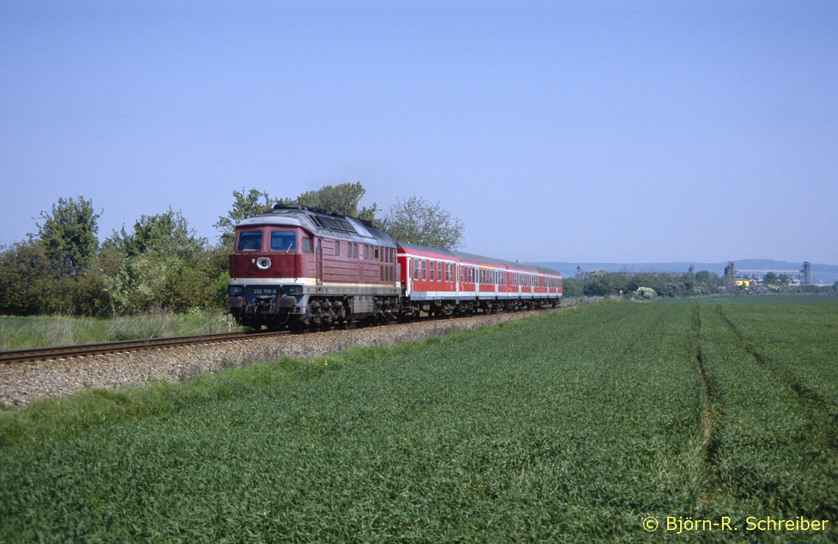 232 332 am 15.05.1995 mit P 5707 bei Klein Oschersleben |