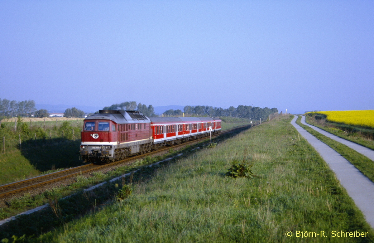 234 565 am 15.05.1995 mit D 2143 in Hadmersleben |